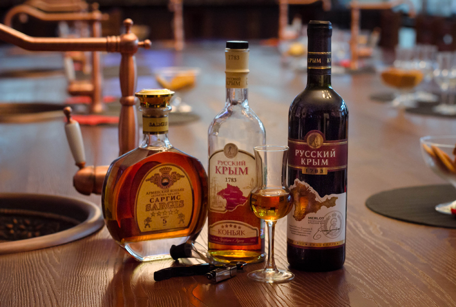 Отдельное место в презентации посветили крымскому алкоголю. Крым — уникальное место для виноделия. Разнообразие почвенно-климатических зон позволяет производителям выращивать хороший виноград, а из него делать достойные коньяки и ароматные вина. В нашей сети можно найти коньяк «Русский Крым», пользующийся большим спросом, и линейку крымских столовых вин.