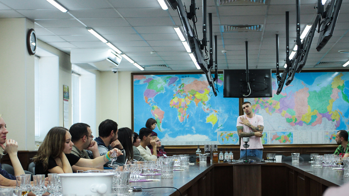 Никита поделился, как правильно пить виски: «Так, как это делают в стране, откуда он прибыл. В Шотландии, например, если зайти в бар, можно увидеть картину, которая называется «шотландские наручники» — в одной руке виски, в другой — пиво». Также он рассказал про историю бренда, описал процесс изготовления виски.