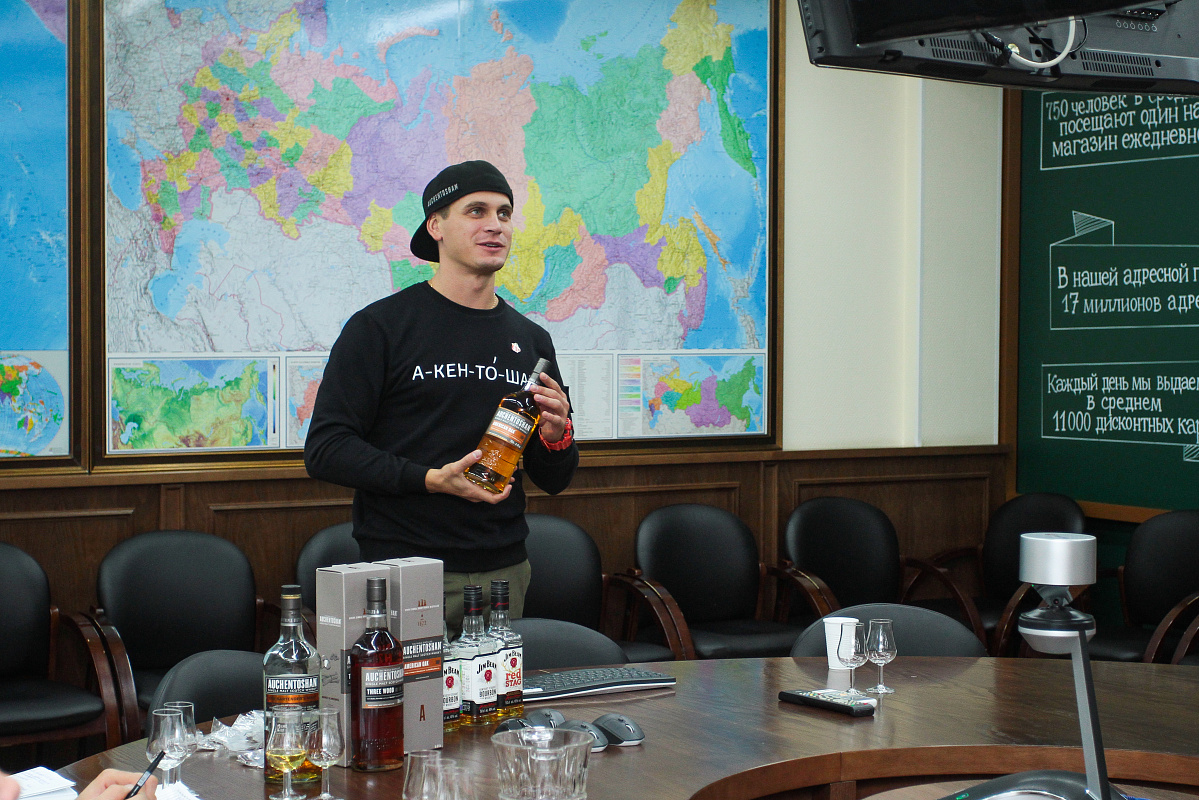 «Каждый бурбон — это виски, но не каждый виски — это бурбон», — с этими словами Иван передал слово Никите Курочкину, бренд-амбассадору Auchentoshan.