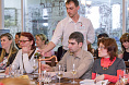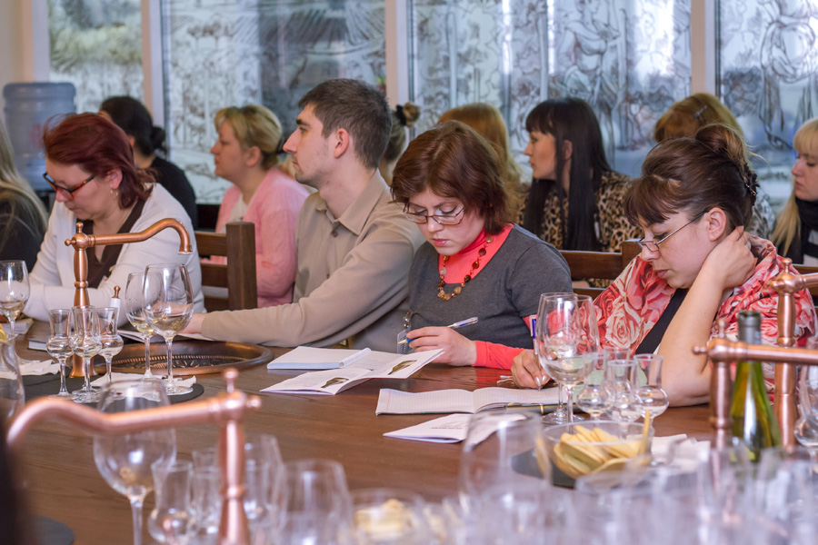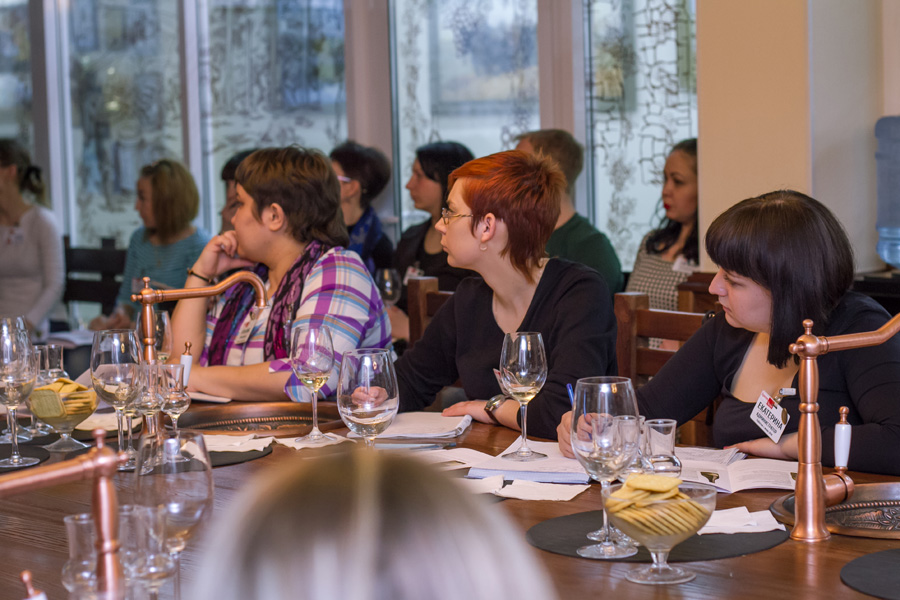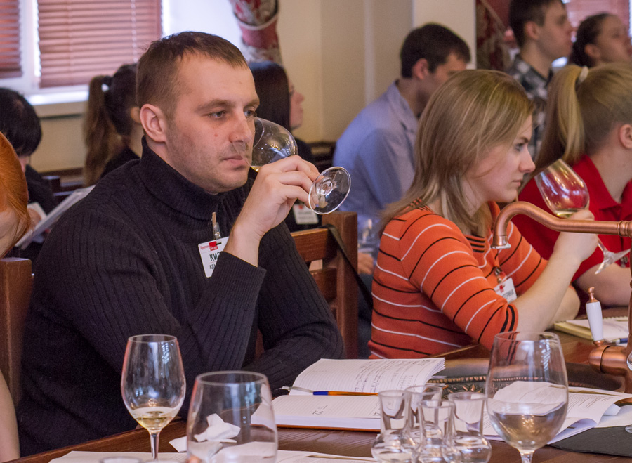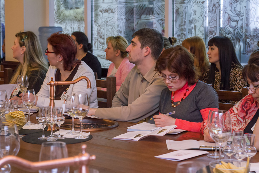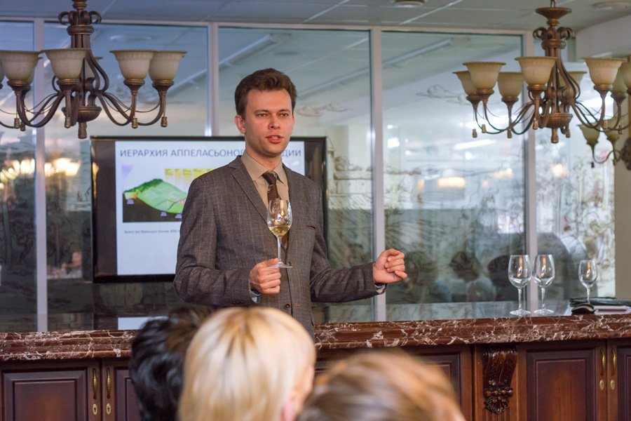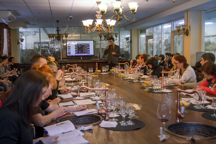 В последний день марта шеф-сомелье компании Eurowine Сергей Смолин провел для сотрудников «Красное&Белое» обучающий семинар по прекрасным винам разных стран. Он рассказал не только об особенностях каждого вина, но и подсказал, к каким блюдам можно их рекомендовать.