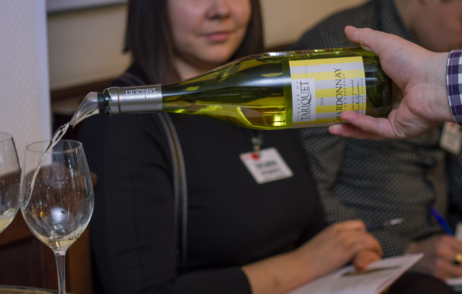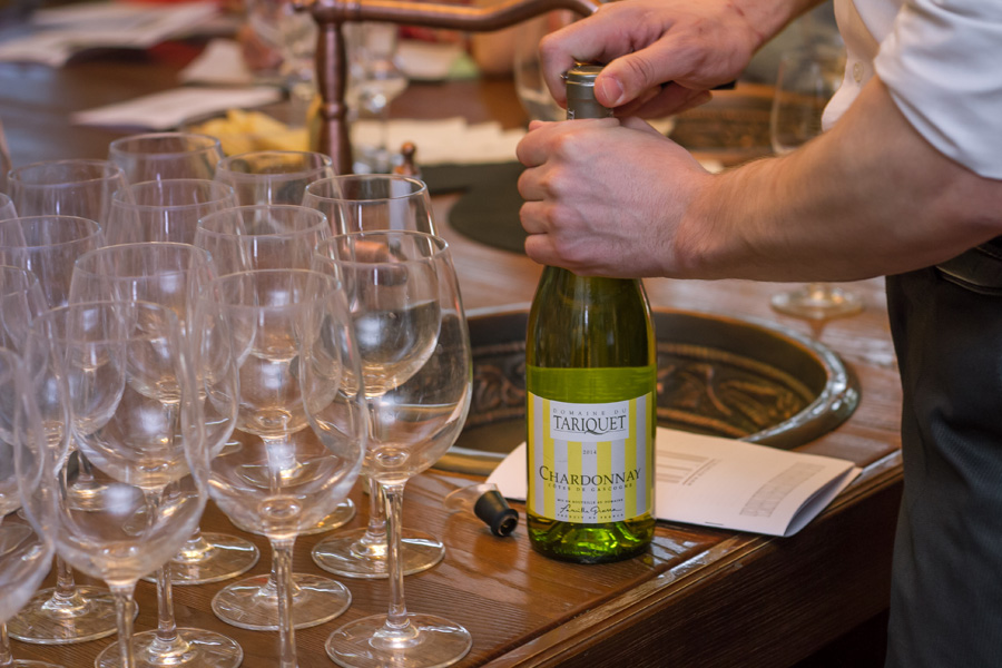 Дегустацию начали с французских вин из региона Гасконь. Винный дом Tariquet в прямом смысле ломает существующие французские традиции виноделия: благодаря своей смелости и решительности владельцам Tariquet удалось создать уникальные вина, не похожие на традиционные французские, и завоевать славу на мировом рынке. Вина Tariquet — это солнечные южные вина, представляющие лучшие образцы гасконского виноделия. Освежающий Sauvignon отлично подойдет к овощным салатам, а фруктовое Chardonnay составит прекрасную пару к блюдам из курицы.