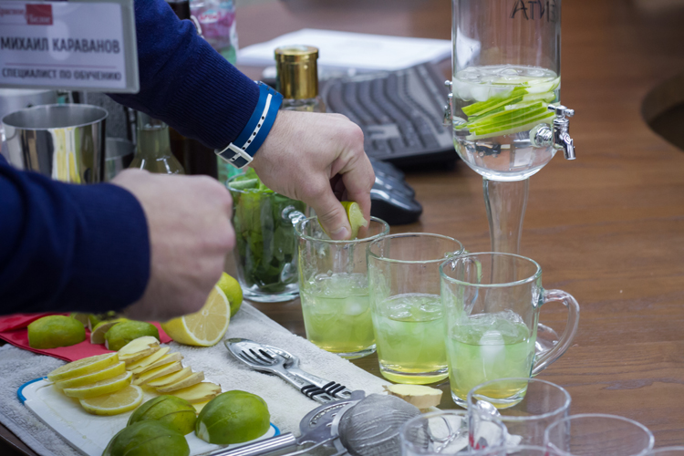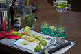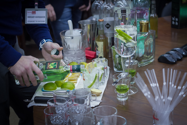 Абсент, как напиток, существует уже более 200 лет. Absent Xenta же впервые в России появился 20 лет назад и сразу же привлек к себе большое внимание. И неспроста. Это уникальный продукт: несмотря на свой яркий зеленый цвет, напиток состоит только из натуральных ингредиентов и совершенно не содержит красителей. Основными составляющими являются три компонента — полынь, кориандр и анис. Именно они дают такой уникальный вкус. Но несмотря на явный горьковатый оттенок, абсент легко можно комбинировать с другими напитками. Представители Xenta предложили нам попробовать нестандартную подачу: на смену классического рецепта употребления абсента, мы продегустировали его с кусочком сахара и огуречной водой. Очень необычно!