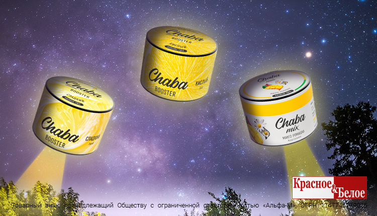 «Чаба» — смесь для кальяна, выпущенная компанией Chabacco. В «Красное&Белое» вы найдете бустеры — усилители вкуса. «Кислый» добавит яркую кислинку в чашу, а «Сладкий» аромат десертной ванили. Также в магазинах представлены миксы: «Манго-Ромашка» с ароматом зеленого чая, летней ромашки и сочного манго, «Айс Бонбон» с ментолом, плавно перетекающим в конфетную сладость и «Фисташковый макарун» — сладкие зеленые фисташки с тропическим ананасом.