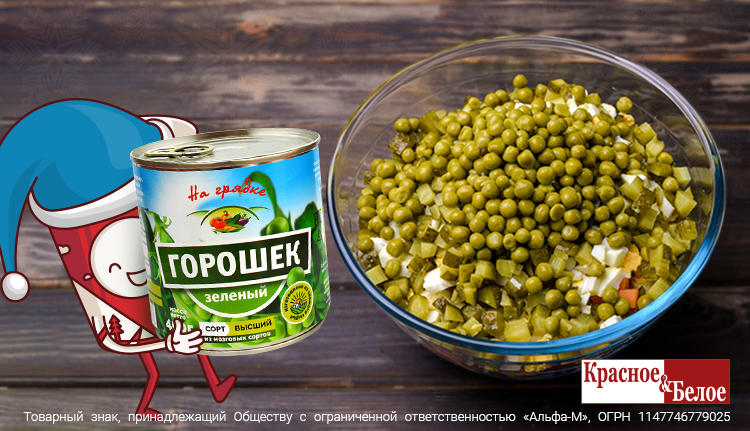 Ну какой праздничный стол без «Оливье»? Молодой горошек из мозговых сортов очень нежный и ароматный. Добавляйте его больше – ведь с ним салат или любое другое блюдо получается в разы вкуснее!
