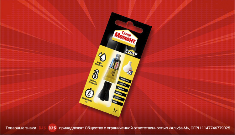 Всё так! В вашем любимом магазине у дома можно найти практически все. И даже клей по приятной цене. Водо- и термостойкий «Супер Момент» склеивает керамику, пластик, металл, дерево, резину и изделия из кожи буквально за 5 секунд. Такая вещь — палочка-выручалочка — обязательно должна быть дома, чтобы непредвиденные обстоятельства не стали проблемой.