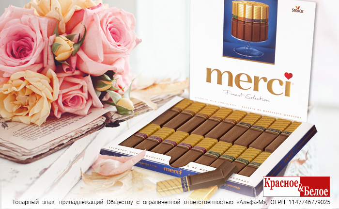 Не существует лучшего способа выразить сердечную благодарность, чем подарок, который говорит сам за себя. Речь идет о наборе конфет Merci. Эти европейские конфеты сделаны из лучших ингредиентов и имеют разнообразные вкусы: трюфельный крем, фундук-миндаль, пралине-крем и крем из темного шоколада. Такой выбор обязательно порадует шоколадных гурманов! Идея создания Merci, как первого подарочного шоколада в индивидуальной упаковке, родилась в 1965 году в Германии. В настоящее время люди более чем в 100 странах мира дарят друг другу конфеты Merci.