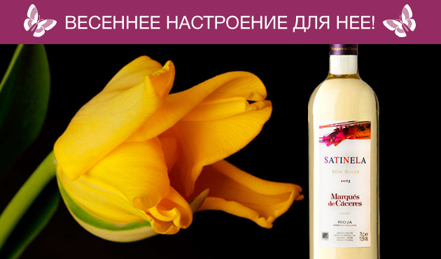 Marqués de Cáceres славится своими ароматными белыми винами. Ваша леди непременно оценит прекрасное вино Satinela с шелковистой нежной текстурой. Аромат вина наполнен изящными фруктовыми и цветочными нотами, а именно липовых цветов, персика, зеленого яблока и грейпфрута, гармонично сменяющихся тонкой миндальной ноткой. Свежий мягкий вкус удивит оттенками айвы, груши, персика в сопровождении тонов красной смородины и лимонной цедры.