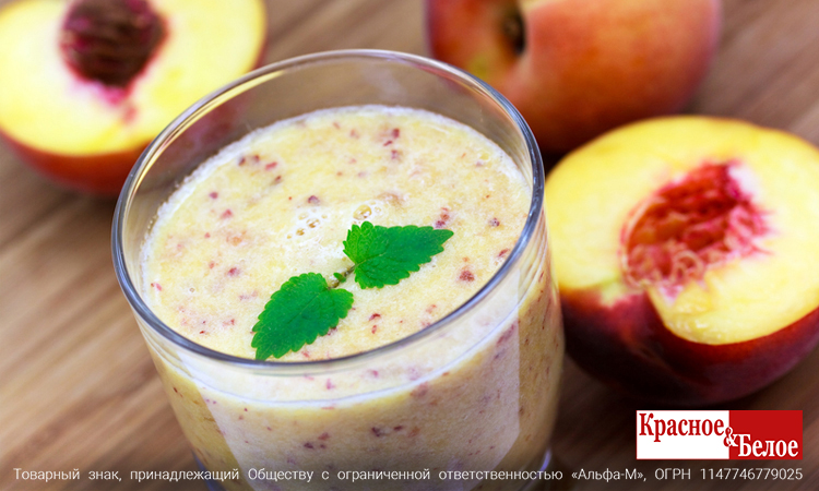 Пряный персик. Положите в блендер несколько кусочков сладкого персика, налейте 200 мл кефира, добавьте щепотку корицы, щепотку мускатного ореха и несколько кубиков льда. Включите блендер и взбивайте пару минут. Полученный напиток перелейте в бокал.
