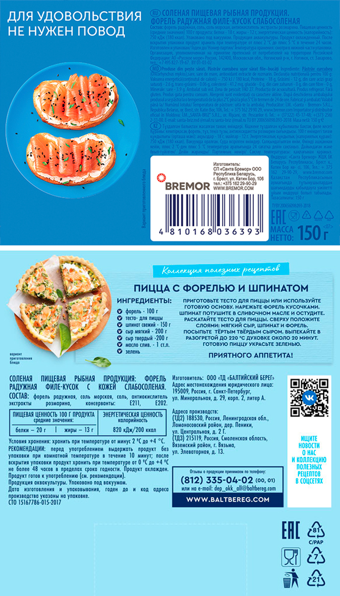 в последний раз брали рыбу, по вкусу отлечалась от предыдущей и запах какой то озерный. на обороте прочитали, оказалось что это РАДУЖНАЯ форель, а не морская(