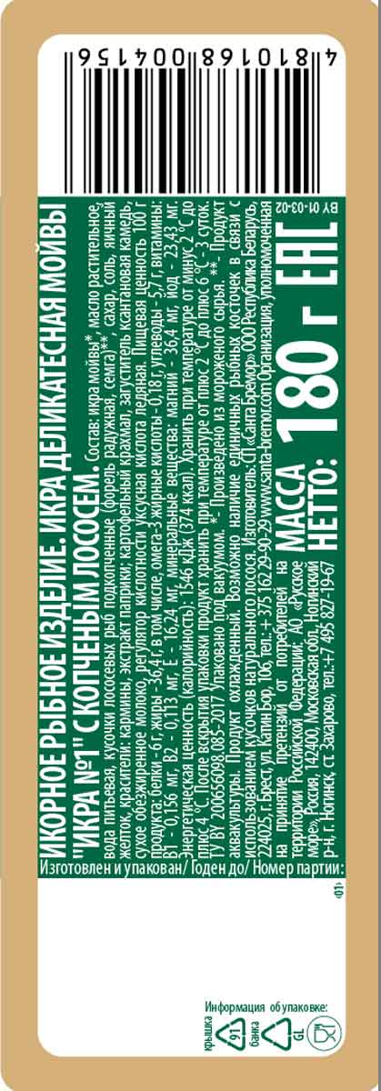 Икра деликатесная — это идеальное сочетание натуральной икры мойвы и нежного соуса. Выраженный неповторимый вкус и аромат, нежная консистенция, хорошо ощутимые икринки — вот за что икра деликатесная столь любима уже долгие годы. Исследованиями доказано содержание в продукте витаминов, минералов, Омега-3 полиненасыщенных жирных кислот и белка. А еще это очень здоровый и полезный продукт.