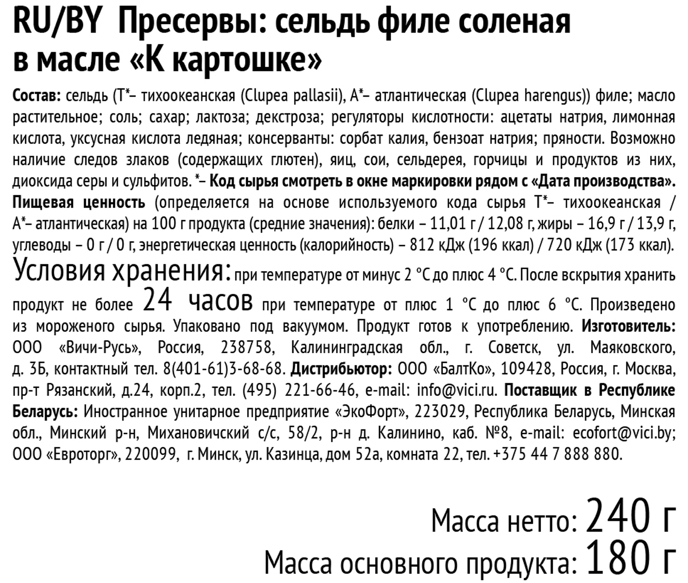 Аппетитное и нежное филе сельди Vici обладает классическим, в меру соленым вкусом. Отлично сочетается с вареной картошкой и луком, создавая традиционное русское блюдо, которое всегда находит отклик в сердце любителей домашней кухни. Филе сельди — не просто вкусная закуска, но и полезный продукт, богатый белком и Омега-3 жирными кислотами, которые поддерживают здоровье сердца и сосудов. Филе отличается упругой текстурой и нежным вкусом, что делает его универсальным ингредиентом для салатов, бутербродов и самостоятельной подачи к столу.