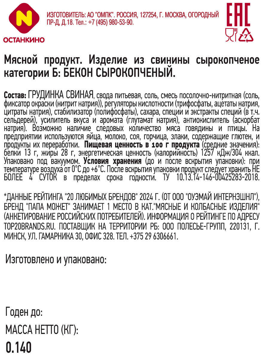 Бекон Папа может с/к
