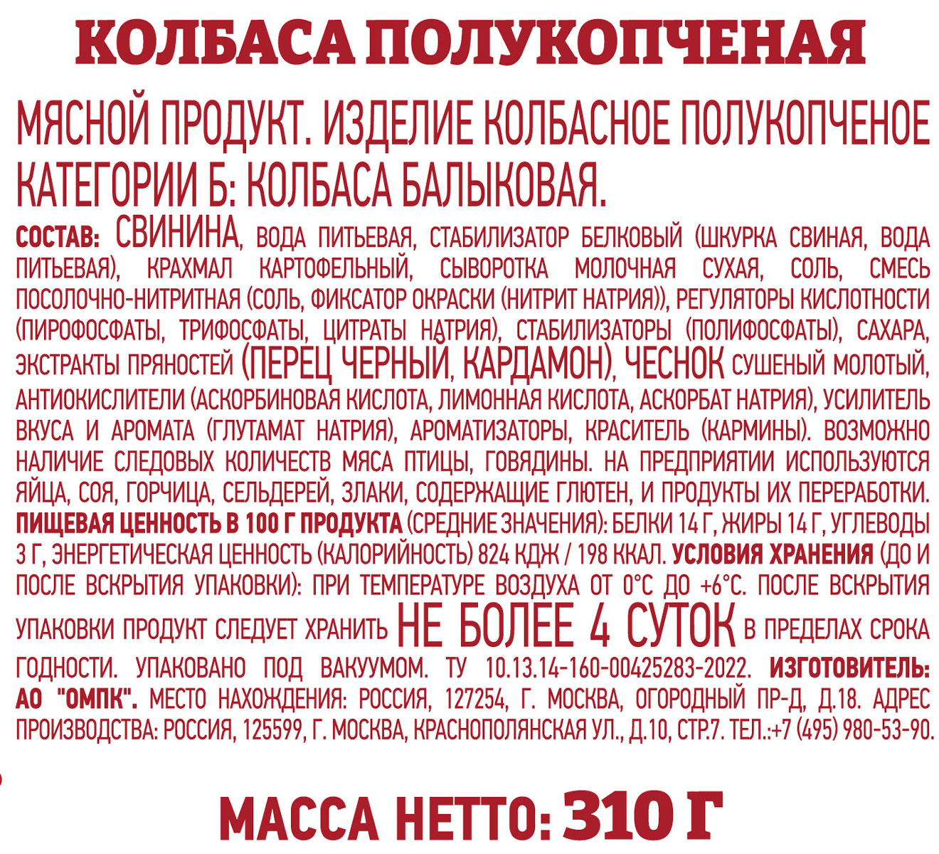 Балыковая колбаса полукопченая