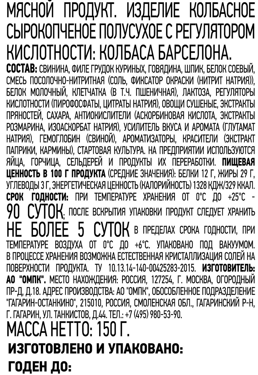 Колбаса Барселона с/к 150 г