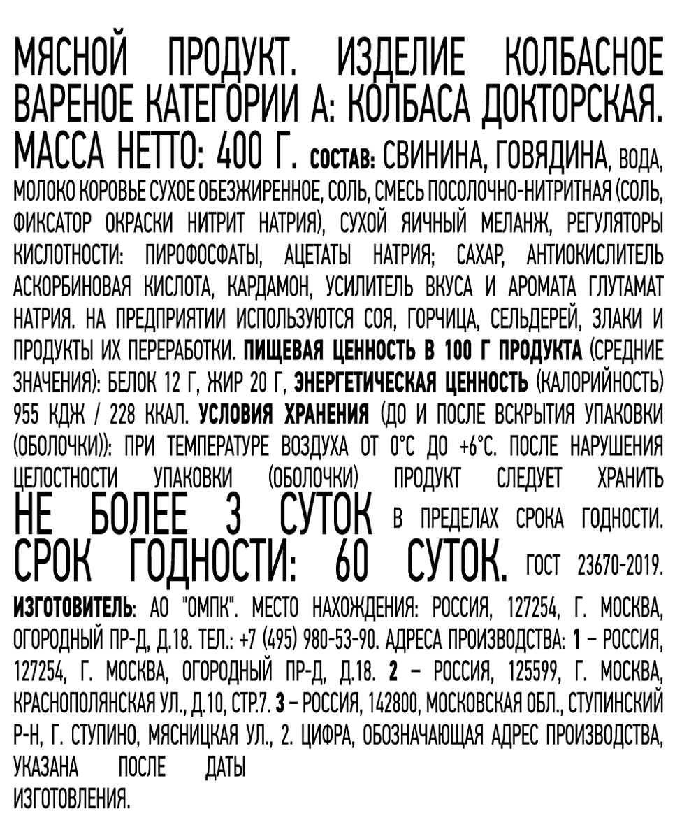 Останкино Докторская колбаса
