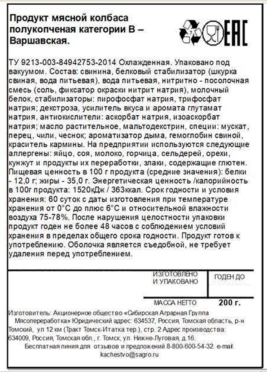 Сибагро Варшавская колбаса