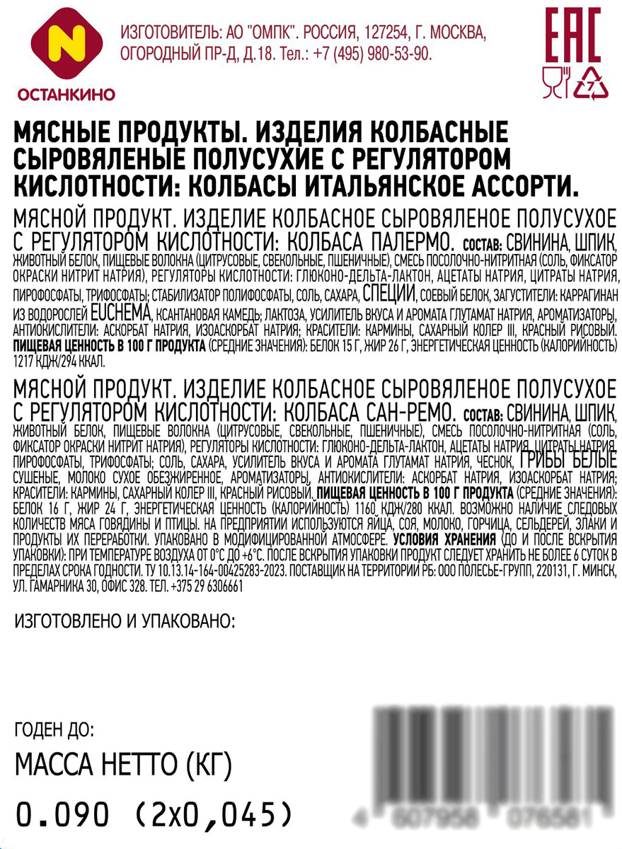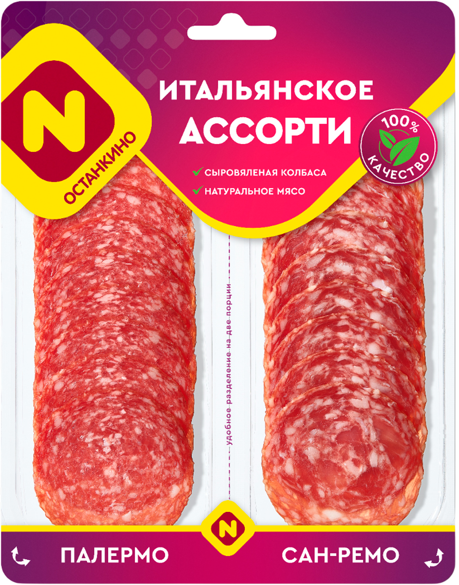 Италия ближе, чем кажется! Премиум дуэт изысканных сыровяленых колбас - Палермо и Сан-Ремо - станет отличным дополнением к вину. Произведены из отборной свинины с добавлением натуральных специй, пряностей, чесночка и белых сухих грибов. Имеют особый, насыщенный аромат и яркий вкус. Итальянское ассорти - самое настоящее украшение любого праздничного стола, точно не оставит равнодушными даже самых взыскательных гурманов. Также сервировочную нарезку удобно взять с собой на пикник или в дорогу.