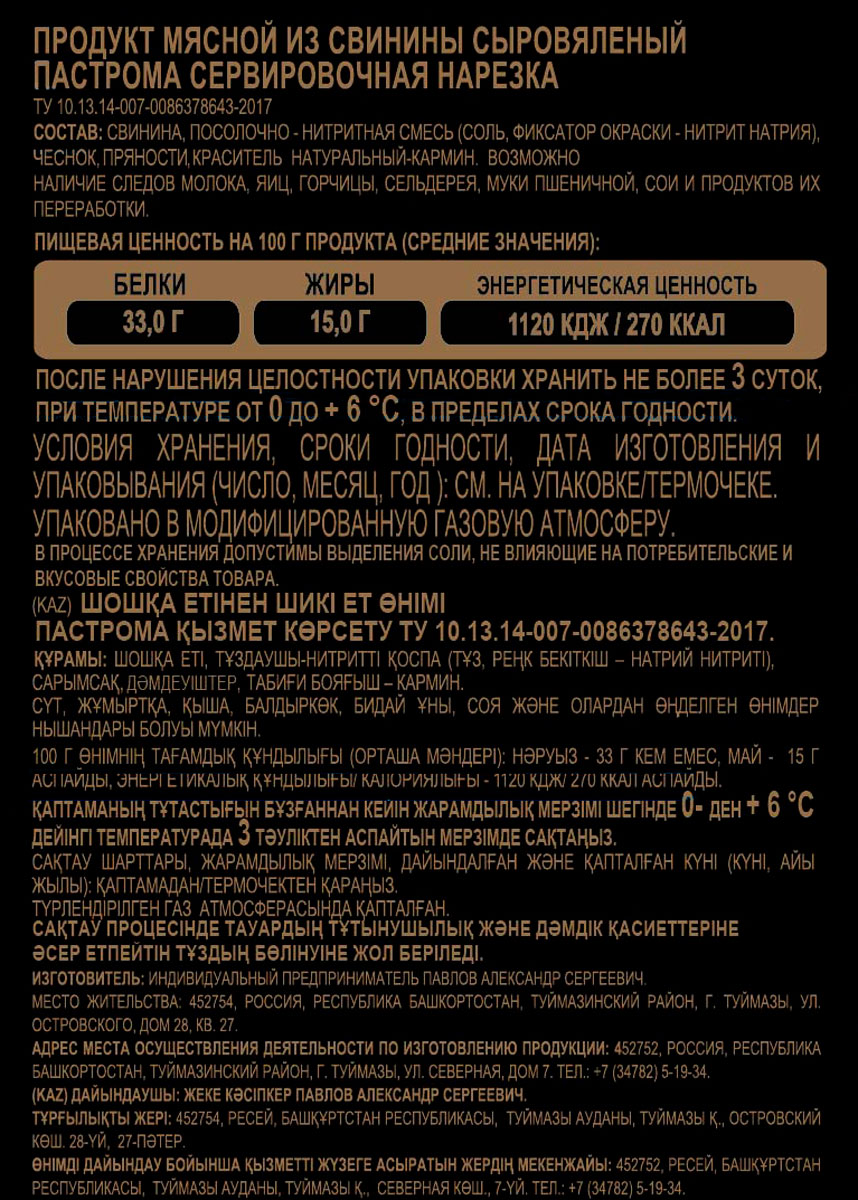 Свиная пастрома — для тех, кто знает, что такое настоящий сыровяленый деликатес. Только чистое мясо и натуральные специи. Каждый ломтик — это результат многодневной выдержки. Нежная текстура и насыщенный вкус сделают пастрому украшением любого стола. Идеальный дуэт к пенному.