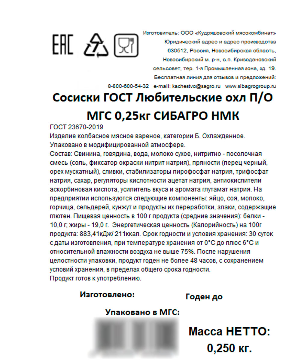Сибагро Любительские Сосиски