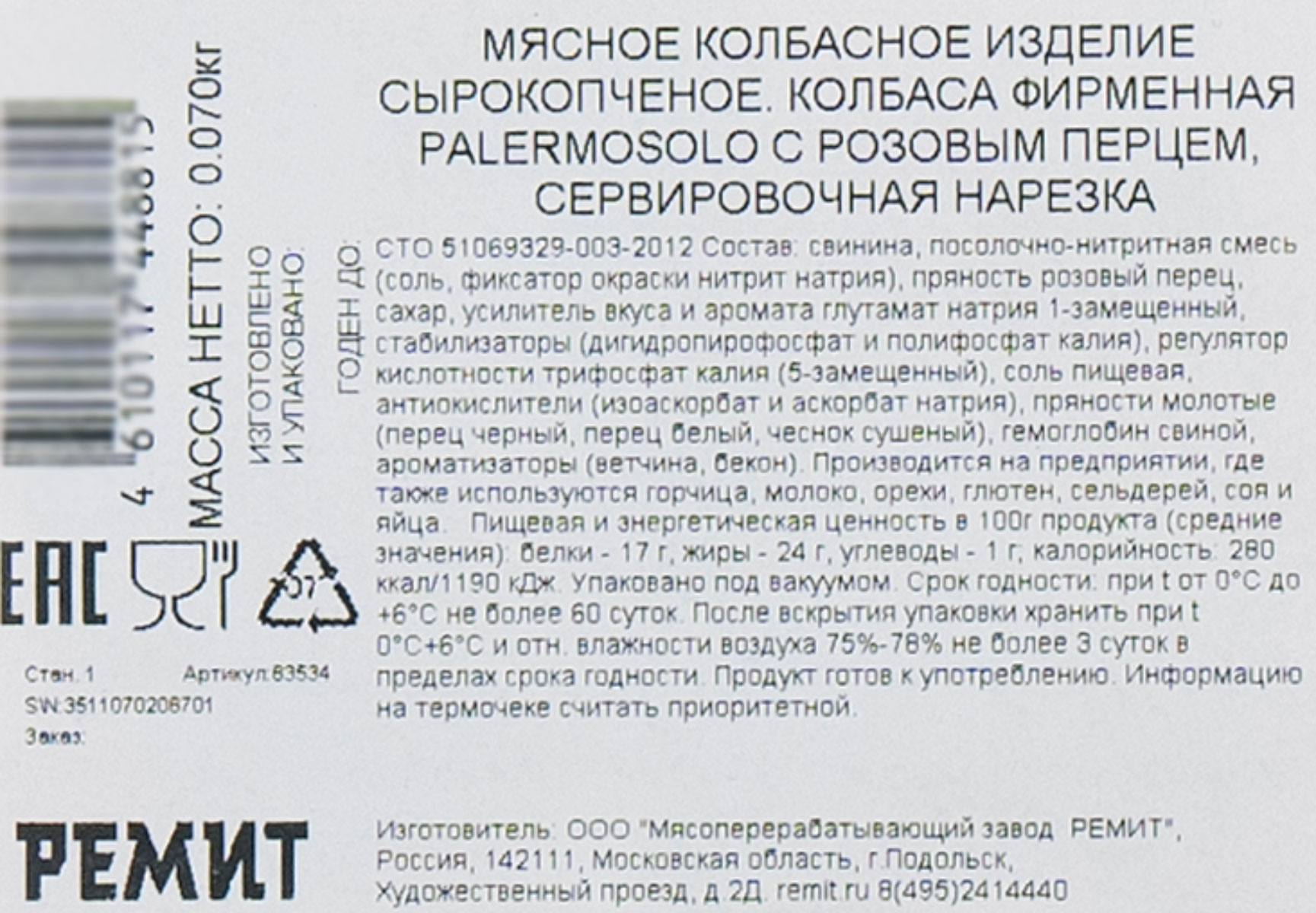 Палермосоло нарезка колбасная Ремит