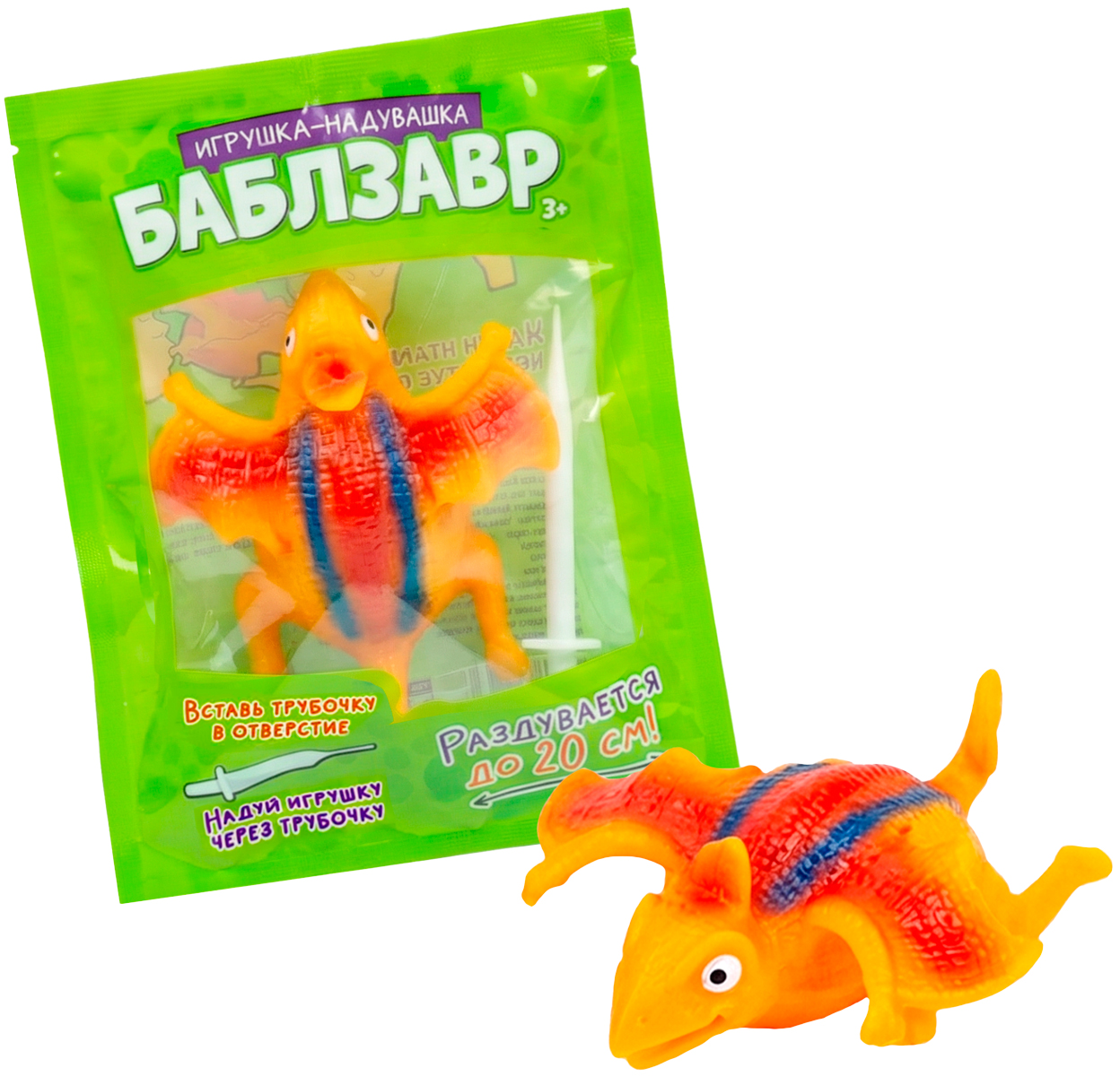 Забавная игрушка-надувашка поднимет настроение и детям, и взрослым. Резиновый динозавр раздувается до 20 см, превращаясь в упругий шарик, и отлично отпрыгивает от твёрдых поверхностей. Приятный на ощупь антистресс и мячик для игры в одной игрушке!