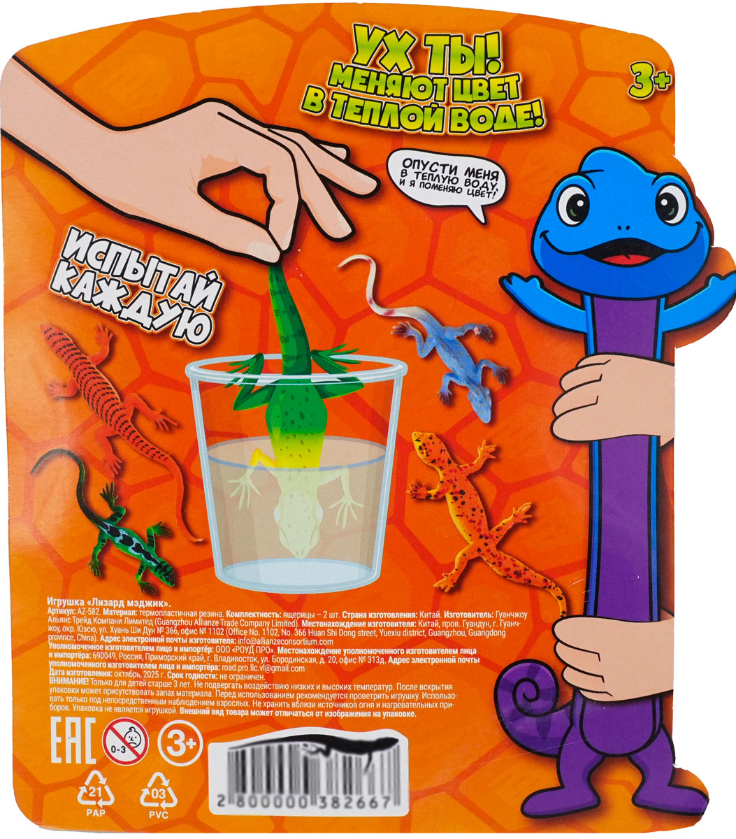 Удивительный научный эксперимент у тебя дома! Игрушка «Лизард мэджик» – это 2 яркие ящерицы в блистере, у которых есть один маленький секрет. Попробуй опустить этих ящериц в горячую воду – и они мгновенно поменяют цвет, а когда остынут – снова станут прежними. Процесс можно повторять бесконечно! Создавай интересные градиенты на теле ящерицы: попробуй опустить их в теплую и в горячую воду, а затем смотри, как они постепенно возвращают свой изначальный окрас. Всего в коллекции — 3 вида наборов. Собери их всех и узнай, как изменяется окрас каждой ящерицы!