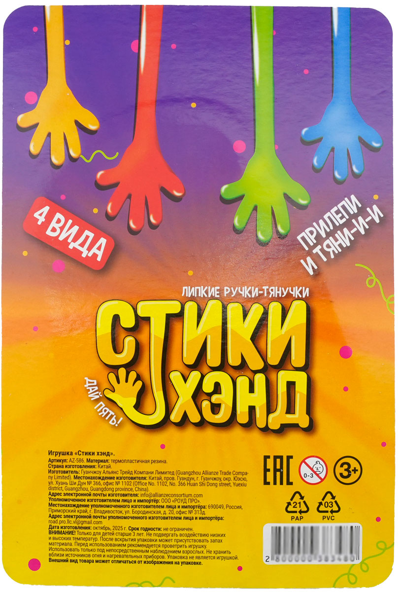 Игрушка «Стики хэнд» – это суперлипучка для активных игр! Невероятно липучая и фантастически эластичная: растягивай, скручивай, завязывай её в узел, а также попробуй бросить её на гладкую поверхность, и она тут же прилипнет! В ассортименте — 4 ярких цвета на любой вкус: выбери свой любимый и устраивай соревнования с друзьями. Ручка-липучка развивает ловкость, координацию и меткость, а также идеальна для того, чтобы повеселиться!