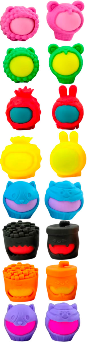 Игрушка «Ямми Сквиш» — это необычные, классные и яркие сквиши с шариком внутри: тяни, жми и меняй костюмчики, создавая разные образы и настроение! Они выполнены в форме любимых сладостей и фастфуда: аппетитные десерты, картошка фри, яркие напитки и другие забавные образы. Каждый персонаж выглядит вкусно и стильно. Всего в коллекции 8 сквишей — это отличный вариант для подарка, коллекционирования и обмена с друзьями. Выбери свой любимый вкус и собери всю яркую коллекцию!