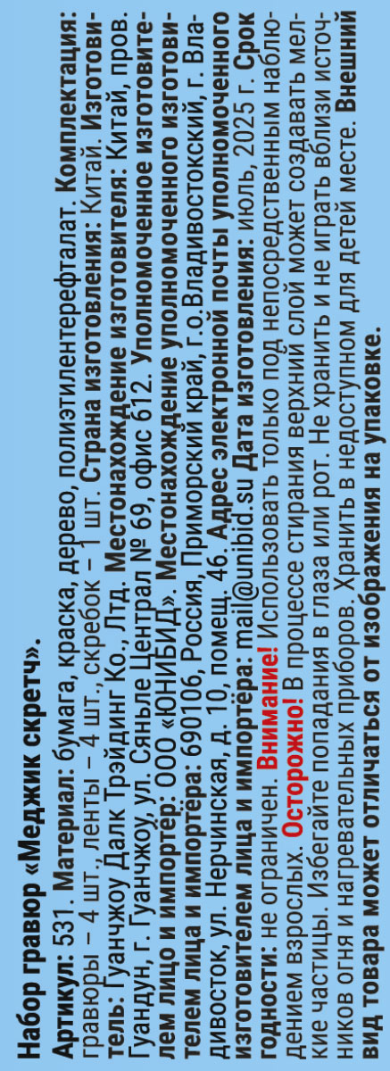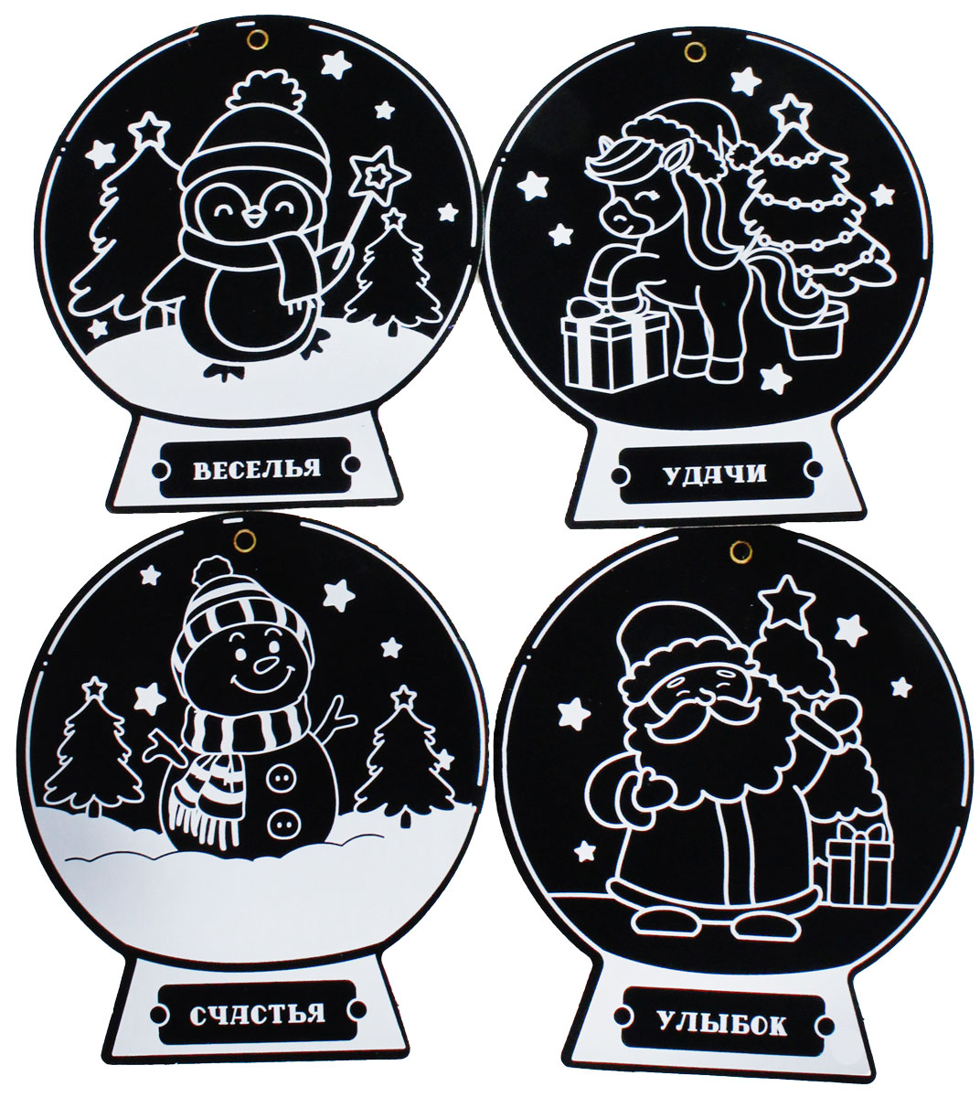 «Меджик Скретч» — праздничный набор гравюр, который превращает творческий процесс в настоящее волшебство. Достаточно аккуратно снять верхний тёмный слой, и под ним проявятся яркие иллюстрации Деда Мороза, снеговика, пингвина и лошадки. В комплекте — удобный деревянный скребок. Набор идеально подходит для зимних вечеров, семейного досуга и как милый подарок к Новому году. Создайте зимнее чудо своими руками и повесьте его на ёлку!