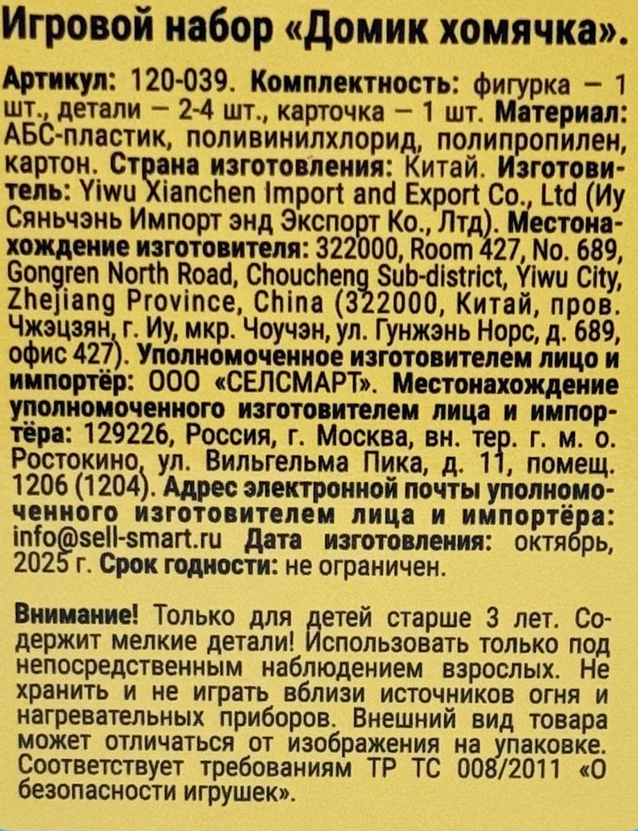 Набор игровой Домик хомячка 1 шт