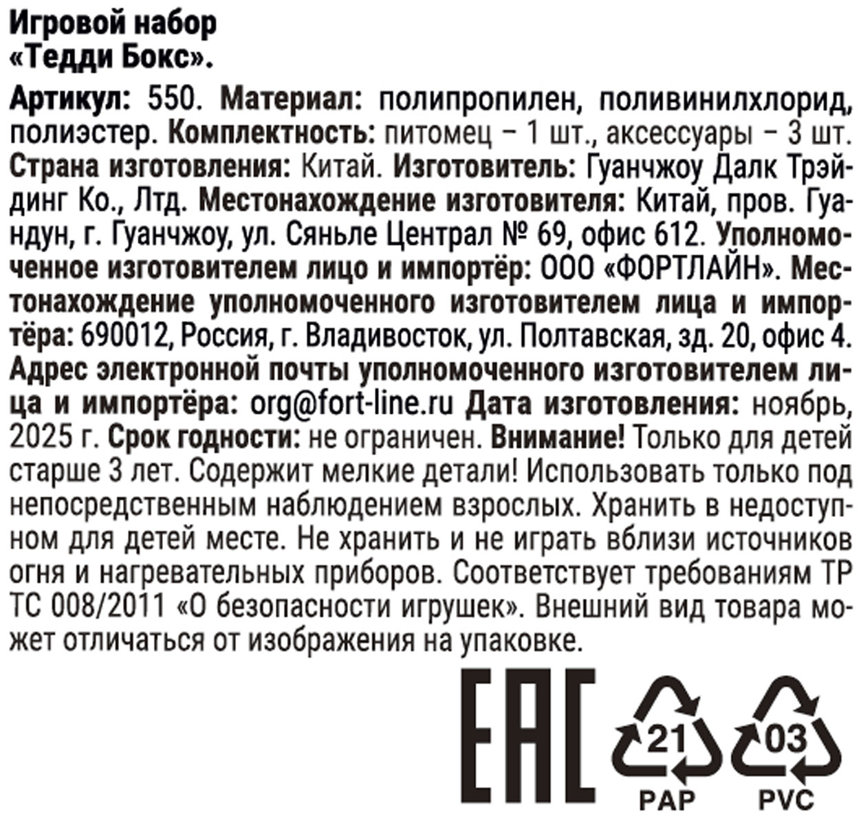«Тедди Бокс» — это милый комплект с очаровательным питомцем и аксессуарами для увлекательной сюжетной игры. В набор входит один питомец и три тематических аксессуара, которые позволяют придумывать разные истории и делают игру более интересной. «Тедди Бокс» легко взять с собой на прогулку или в поездку. Собери все наборы и создавай ещё больше интересных историй с милыми питомцами и их аксессуарами!
