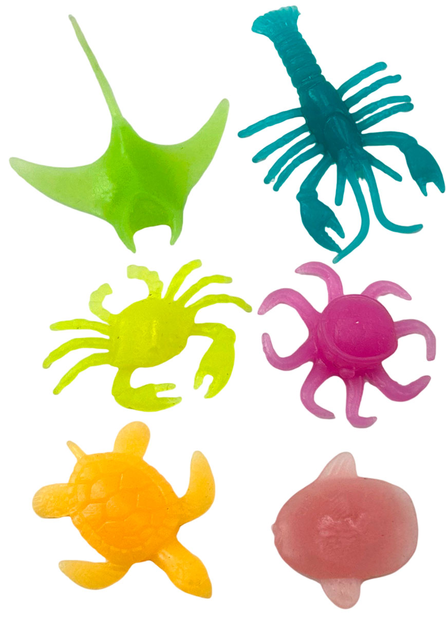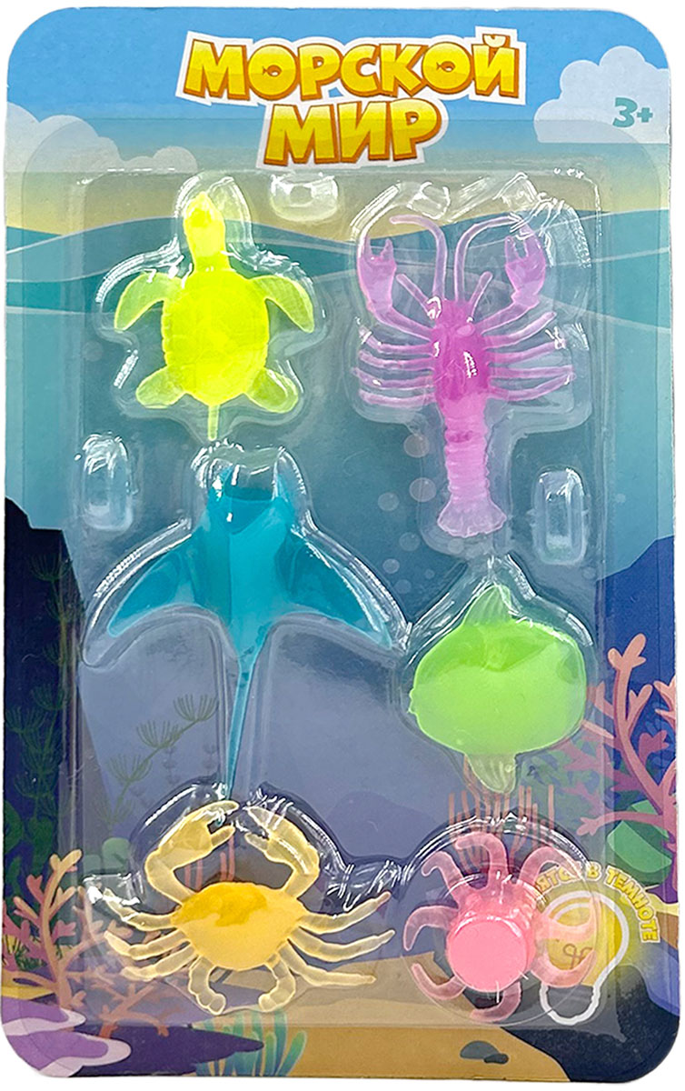 Погружайся в подводное приключение! В наборе тебя ждут 6 ярких морских обитателей, которые будто только что приплыли из глубин океана: рыба-луна, лангуст, осьминог и другие необычные друзья. Но самое интересное начинается в темноте… Эти игрушки светятся! Просто положи их на свет, дай немного «зарядиться» — и смотри, как они начинают ярко сиять, словно настоящие морские создания из глубин! Собери свой мини-океан и проверь, кто из них светится ярче всех!