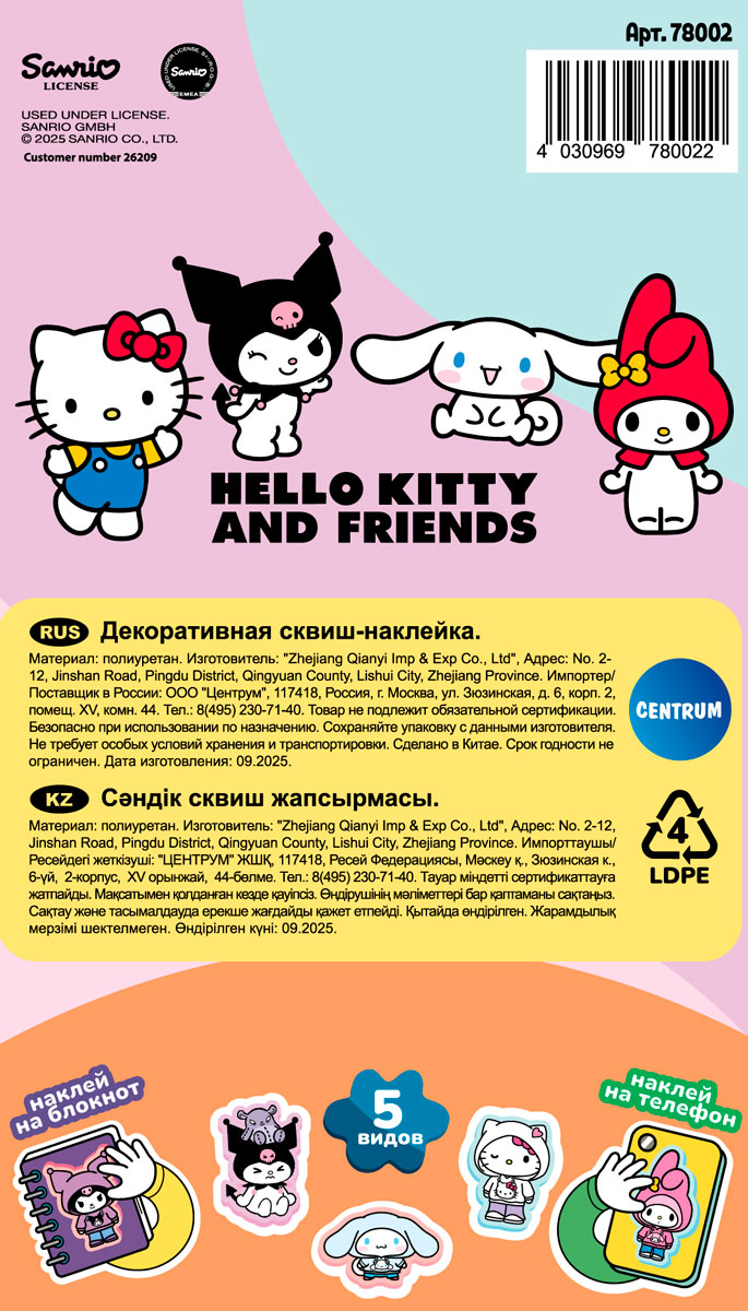 Невероятно мягкая и приятная на ощупь игрушка-антистресс. Невесомый материал словно тает при нажатии, плавно принимая первоначальную форму. Игрушка изготовлена из гипоаллергенных материалов, абсолютно безопасна, имеет нейтральный запах. Качественное нанесение рисунка на поверхность устойчиво к стиранию, не деформируется даже при частом использовании. Играть с ней могут самые маленькие дети, сквиш-стик хорошо развивает мелкую моторику. Его можно легко очистить с помощью воды и мыльного раствора. Подходит для любых поверхностей и надежно крепится: на чехол, тетрадь или мебель. В ассортименте — 5 дизайнов.