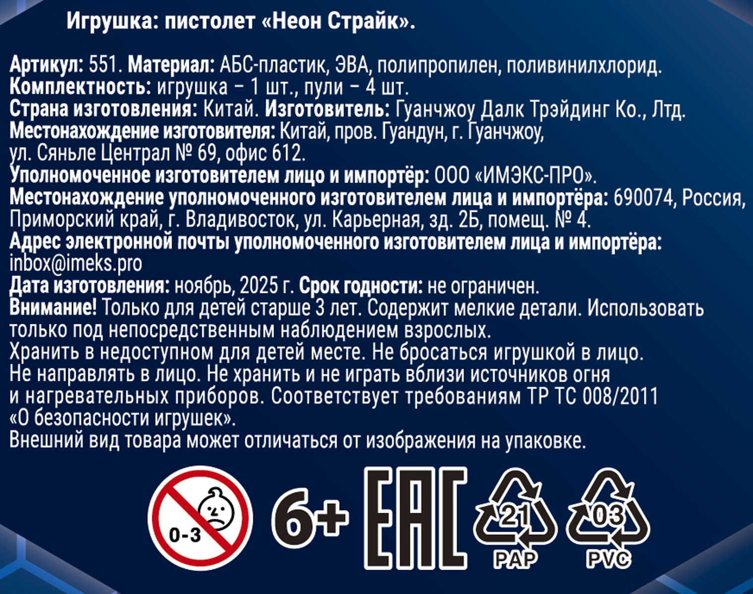 Пистолет Неон Страйк 1 шт
