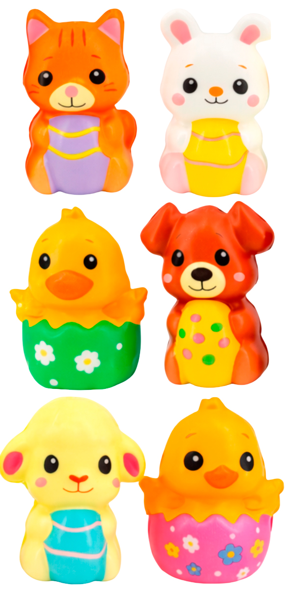 Игрушка-сквиши «Кьютики» — мягкие, приятные на ощупь и такие милые, что рука сама тянется: сожми — и настроение становится лучше. В серии 6 дизайнов — выбери своего фаворита или собери всю пасхальную компанию и устрой маленькую охоту за «Кьютиками». Идеальный пасхальный сюрприз для детей, друзей и себя: в корзинку, в подарок, для декора и просто для радости каждый день.