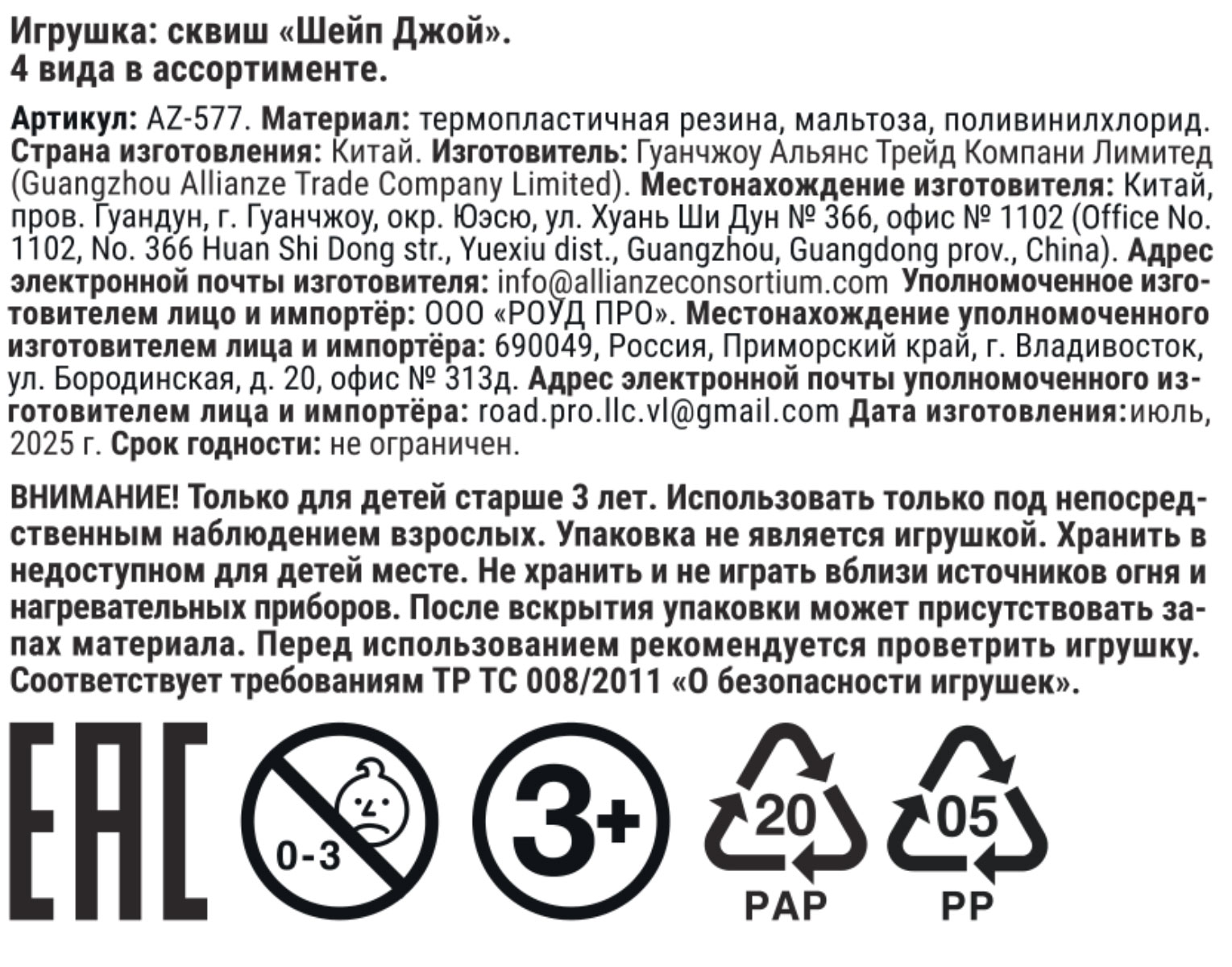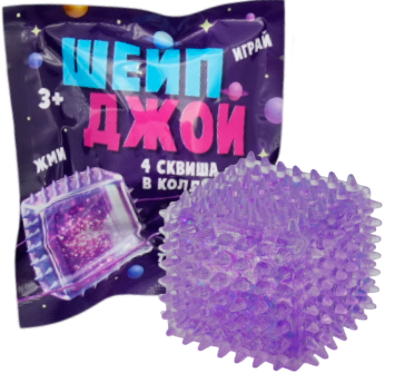 Откройте для себя уникальную коллекцию сквишей, которые перенесут вас в другую галактику! Сквиши «Шейп Джой» — это загадочные планеты с геометрическими ландшафтами и мягкими колючками. Внутри сквиша — цветная блестящая мальтоза, которая усилит антистресс-эффект. Сжимай «Шейп Джой», тяни колючки и растягивай. После игры сквиш вернется в свою изначальную форму. Собери всю коллекцию из четырёх видов и подари себе кусочек космоса, который поместится у тебя в ладошке!