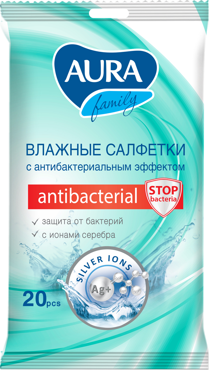 Влажные салфетки Аура антибактериальные 20 шт