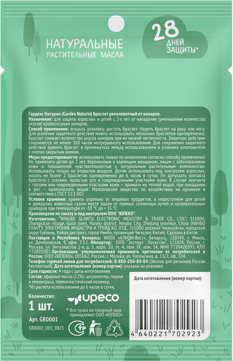 Браслет Гардекс Натурин от комаров детский 1 шт