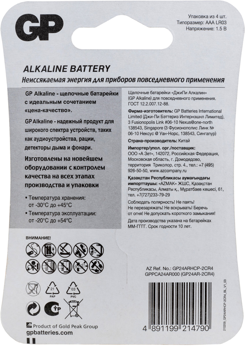 Батареи GP серии SUPER являются надежными источниками питания, которые можно использовать в электроприборах с широким диапазоном токов. Источники питания GP имеют стабильное напряжение 1,5 В на протяжении всего цикла работы. Температурный диапазон использования от -30 до +50 °C. Усовершенствованный солевой электролит, марганцево-цинковая основа батарей, позволяют им работать длительное время, даже в электроприборах с высоким уровнем энергопотребления. В случае длительного хранения батареи обладают низким уровнем саморазряда, что обеспечивает сохранение номинальной мощности на момент начала использования. При производстве батарей GP не используются кадмий, ртуть и прочие вредные вещества.