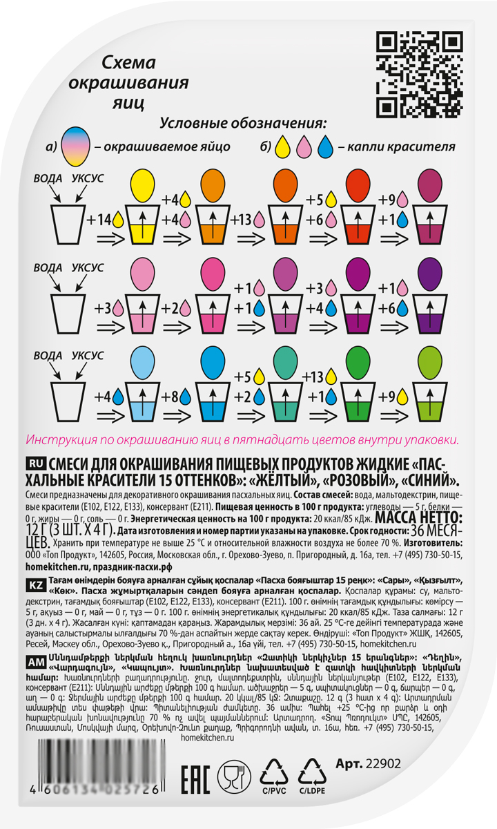 Красители пасхальные 15 оттенков жидкие 1 шт