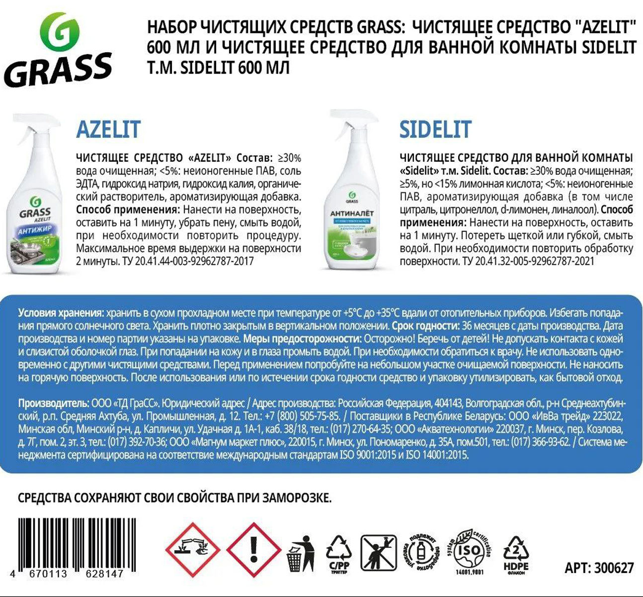 Грасс Набор Azelit и Sidelit Спрей и чистящее средство