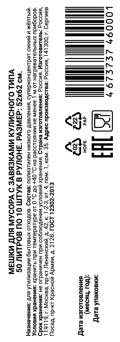 Суперпрочные полиэтиленовые пакеты объемом 50 литров. Не протекают, не пропускают запахи. Их можно не только использовать для отходов на кухне, но и для хранения и перевозки одежды, обуви, упаковки и клининга. Благодаря завязкам все содержимое пакета будет оставаться в нем и не рассыплется. Удобны и просты в использовании.
