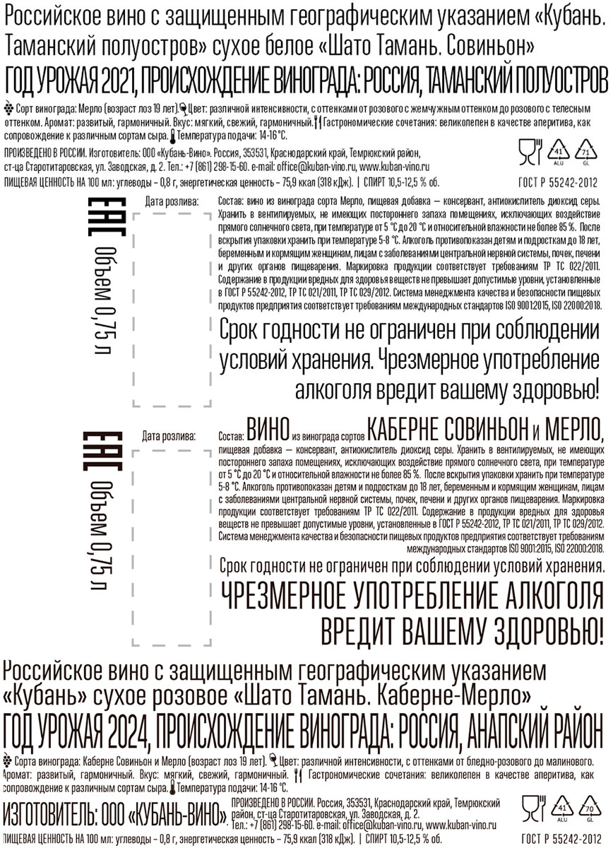 Вино Шато Тамань Мерло/Мерло Каберне Совиньон розовое сухое 0,75 л