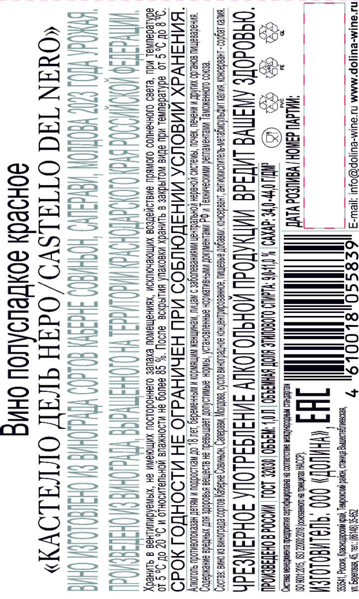 Вино Кастелло Дель Неро красное полусладкое 1 л