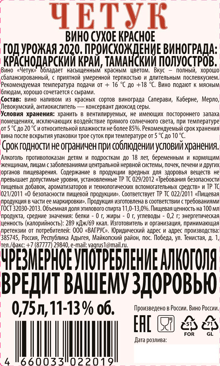 Вино Четук красное сухое