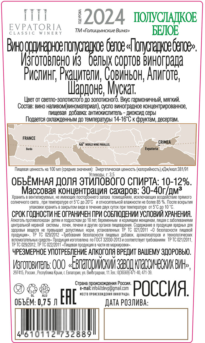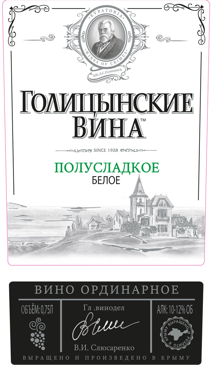 Голицынские вина белое полусладкое