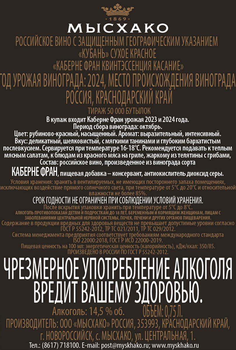 Вино Каберне Фран Квинтэссенция Касание красное сухое 0,75 л