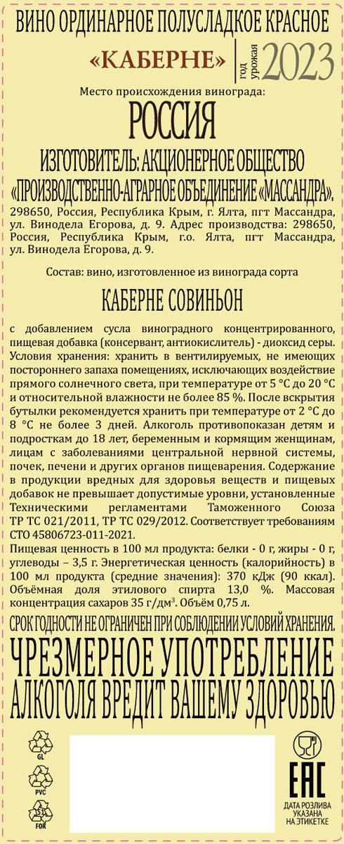 С точки зрения вкуса и аромата не такое интересное как были каберне от Шато-Тамань и сухое от той же Массандры. Но сладость не приторная, пить приятно. Потому четвёрка.