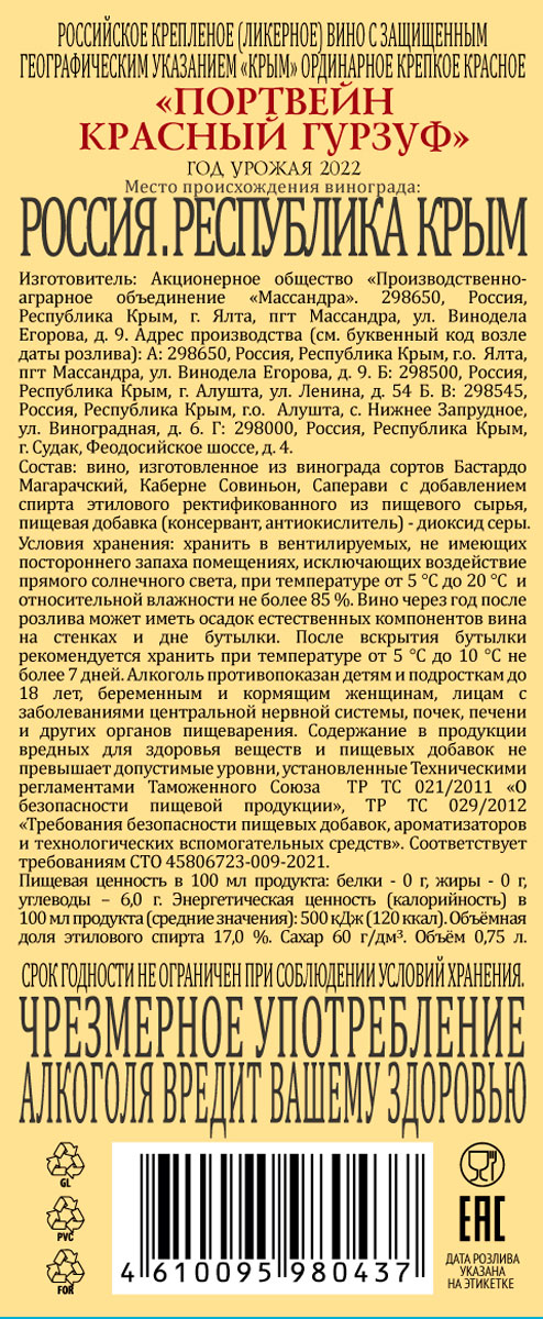 Портвейн красный Гурзуф