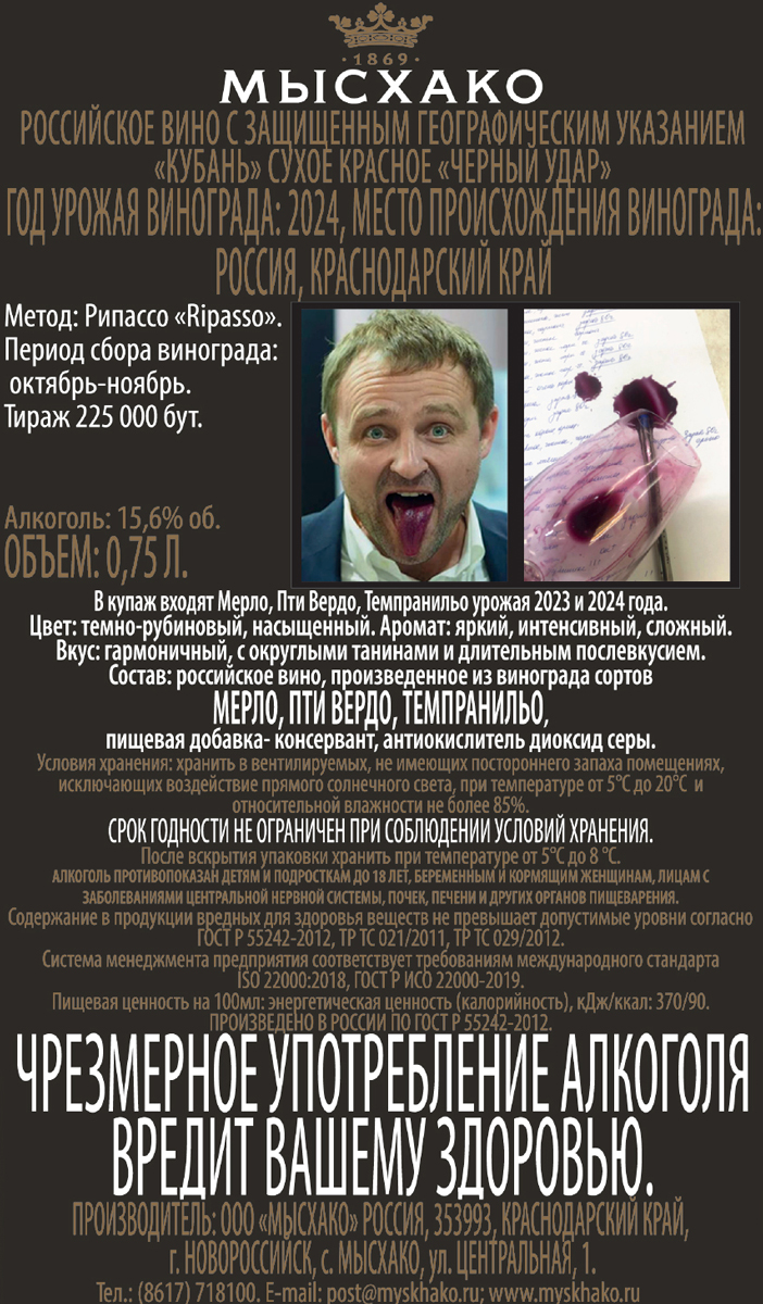Черный удар Рипассо Винодельня Мысхако